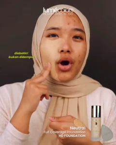lumecolors Foundation yang memiliki nama lengkap lumecolors HD Foundation Full Coverage Ultra Lightweight ini merupakan Ultra Lightweight Oil Control Based Foundation dengan tekstur super ringan, buildable, dan full coverage yang memberikan hasil akhir Matte Natural Glowing hingga 16 jam. Karena full coverage produk ini paling optimal untuk menyamarkan bekas jerawat atau jerawat.